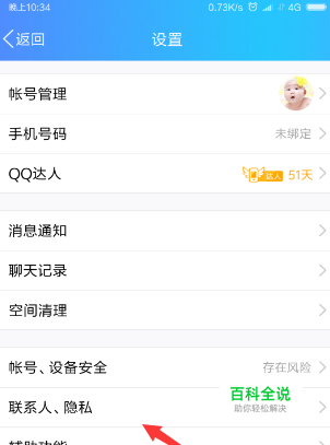 设置点按完成后,接着点按开这个设置里面的【联系人、隐私】,如图。