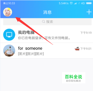 QQ界面点开后,我们接着点按开自己的头像位置处,如图。