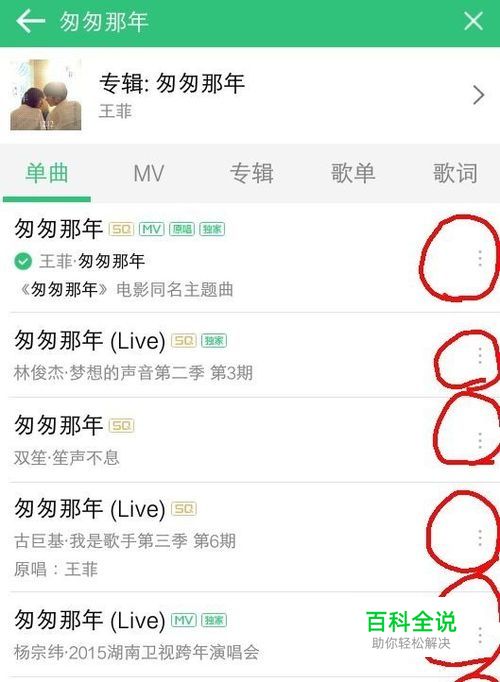 找到需要分享的歌曲,点击对应歌曲后面的三个点