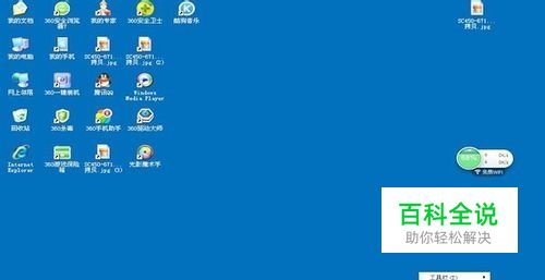 我们把鼠标放在任务栏和桌面交接的部位,等鼠标的光标变成两边都是箭头的时候,我们把任务栏拉向桌面的中心部位,这样,任务栏就变宽了。