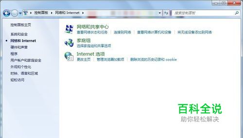 控制面板→网络和Internet