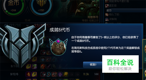 最后,游戏已开心为主,千万不要忘了玩游戏的主要目的是什么,获得两个S-评分后,可以在海克斯的战利品中找到成就6代币,之后在加相应的条件即可合成6级成就。