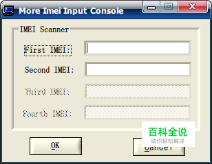 在弹出的“More Imei Input Console”方框中输入IMEI,如果双卡手机只提供了一个IMEI,那么,两个框中都要填写一个IMEI,如果提供了两个IMEI,那么按照先后顺序填入IMEI即可。单卡手机只有一个编辑框填写IMEI,请注意区别。填写完成后点击“OK”继续。