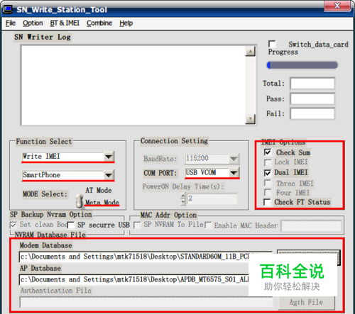 将手机彻底关机,无论使用正常的关机方法也好还是扣电池也好我都不管,只要让你的手机在“睡觉”就行了。通过USB数据线连接到电脑上(注意:如果同一电脑上还连接着其它手机请务必断开连接,否则可能导致出错)。 将主程序按照下图设置好各个参数。 点击主程序的“Modem Database”,找到线刷包里以BPLG开头的文件选中并打开。点击主程序的“AP Database”,找到线刷包里以APDB开头的文件,选中并打开。(注意千万不要选错,否则会导致程序出现“Kernel handshake failed”等错误)特别说明的一点是,如果手机为单卡手机,请不要勾选“IMEI Options”框中任何一个选项。如果手机为双卡手机,才可以勾选“Check Sum”与“Dual IMEI”。一切设置好以后点击主程序右下角的“START”。