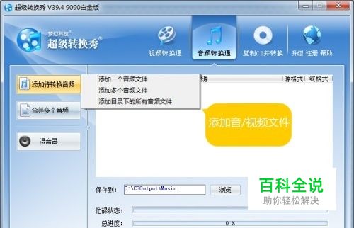 将要转换的音乐或视频导入 作为国内发展最久的转换软件,《超级转换秀》的功能也越加强大。它几乎支持导入所有格式的音/视频文件,而导入方式也多样,不管是单个、多个,还是整个目录下的全部音/视频文件,都能一次性导入,可见软件的设计非常人性化!