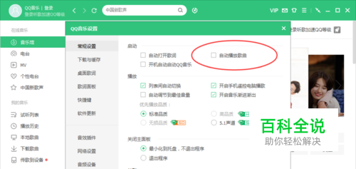 QQ音乐怎么取消启动自动播放音乐
