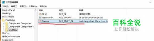按照 HKEY_CURRENT_USER\Software\Microsoft\Windows\CurrentVersion\Explorer\ Discardable\PostSetup\ShellNew\Classes 的路径寻找,最后一步的classes是在右侧中的键,而不是左边的