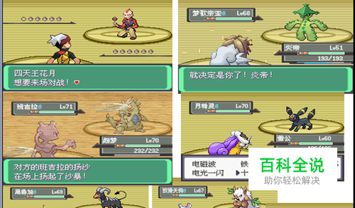 小编觉得自己写的第一次攻略不行,so,我外加一天的时间把口袋怪兽漆黑打了一遍,那个累啊,不过据小编一天的努力,终于通关了,下文便是小编打四大天王的截图及个人打法分享,希望大家喜欢。先报下个人所带的精灵