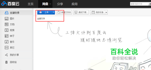 选择你要上传的文件上传,一般百度网盘上传文件比较快,比qq邮箱快多了