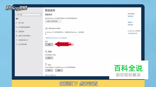 点击“开始”-“设置”-“帐户”-“登录选项”。