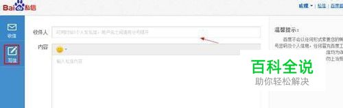 3.点击“ 私信”选项,便可进入百度私信发送。直接输入需要发送的内容,然后发送验证码即可