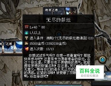 无尽的祭坛、一天只能进13次、进入次数越多、花费的门票费用也就越高。、