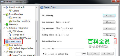 在弹出的“settings”窗口右侧,点击“Saved Data”,点击左侧的“Authentication”后方的“clear”按钮即可
