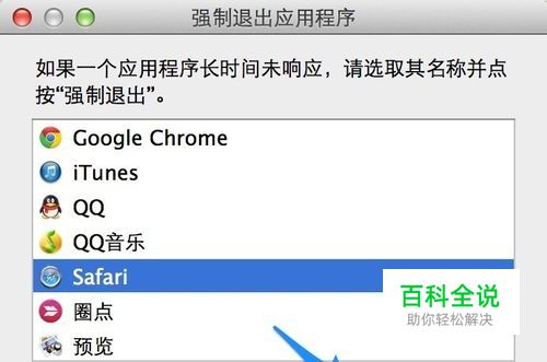 随后在弹出的强制退出应用程序窗口中,选择已经卡死无响应的应用程序,点击 “强制退出”按钮,如图所示