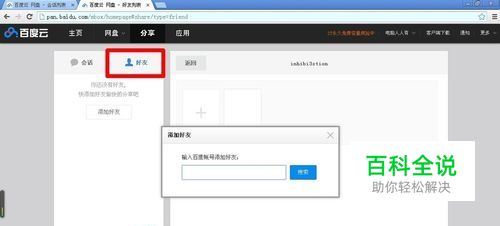 好友: 以上是网友主动搭讪,如果知道好友的百度账号名称,也可以在这里点击好友→添加好友,就能分享资源、私聊了。