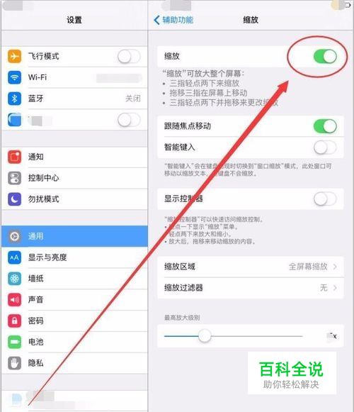 将缩放功能中的开关打开,就可以使用放大缩小了。