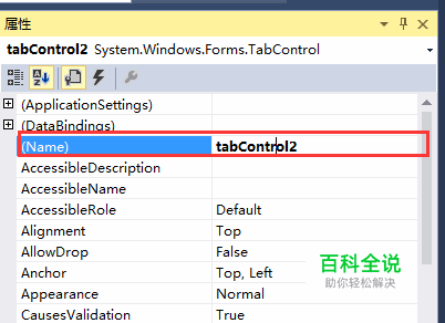 Name属性:Name属性标识该控件的名称,这个控件一般以tpg为前缀,后面加控件的名字。