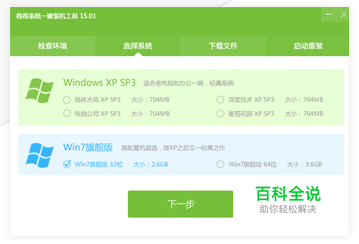 选择系统,根据您的个人喜好以及电脑的配置选择需要系统,然后点击“选择系统”,并选择所需的系统类型,一般情况下单核处理器选择XP,双核和四核选择win7,小于2G内存选择32位,反之选择64位!