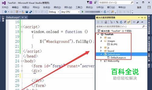 首先,Visual Studio打开一个网站,本例为TwoFish,在网站中已放置了图片资源,以及需使用的css样式和js代码。