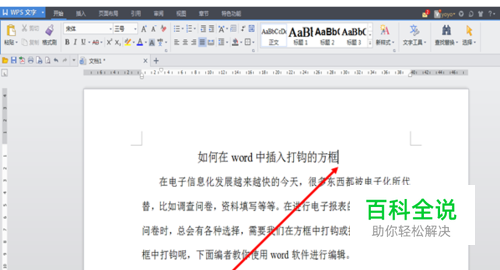 第一步:打开文档,将光标停留在需要插入打钩(或打叉)的方框位置。
