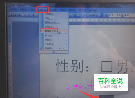选定空白方框,点击菜单栏内“插入"---"特殊符号”