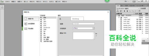 执行菜单栏中的"文件>新建"命令或按住Ctrl+N键打开"新建文档"对话框,选择其文档类型为HTML,单击"创建"按钮,即创建一个网页文档。