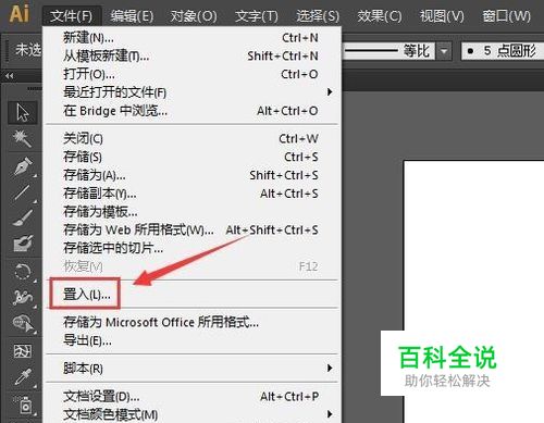 在该界面内找到文件菜单,在文件菜单的子级菜单里找到置入选项,如图所示: