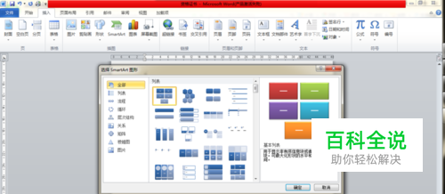 “插入“-“smartart”,弹出对话框,选择一个需要的smartart图形。