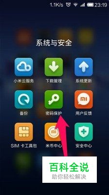 打开自己的手机,找到密码保护,点击进入密码保护。