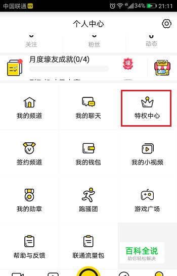 第二步进去软件个人中心之后,选择特权中心,如下图所示: