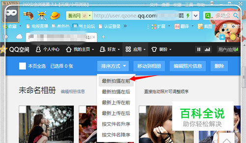 我们上传照片qq空间,但是发现上传之后,默认的顺序与我们上传时候的文件夹中的 图片顺序不一样,或者是想改变某一个相册中的照片的顺序,见下面图文。