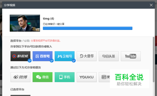 另外,我们还可以进入下一步,将视频一键分享到多个平台里,非常的简单方便,如果无需此步,则在第六步即可关闭窗口,完成视频制作过程。