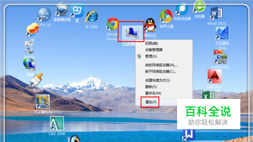 在桌面上点击“计算机”,选中它,然后点击鼠标右键,在弹出的功能栏目中,点击“属性”。