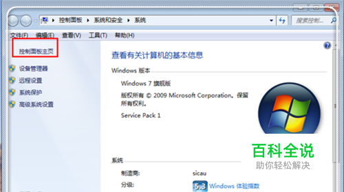 进入计算机系统相关栏目,点击左上角的“控制面板主页”,进入控制面板。