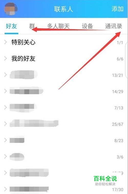 首先,在手机上打开QQ并登录,点击QQ底部的联系人,然后在顶部的分类中向左滑动。