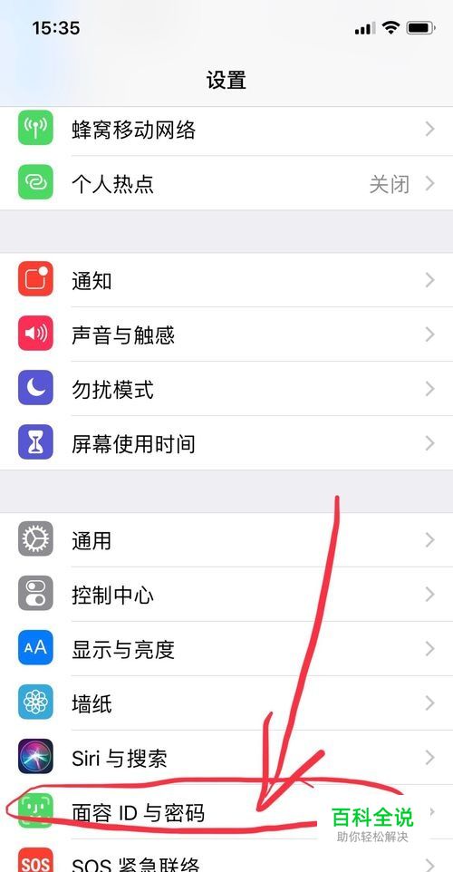 在打开的页面往上滑找到“面容ID与密码”图标及字样,点击打开。