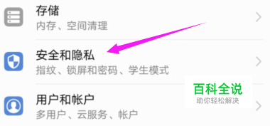 当小编将【设置】击开之后,小编就击开【安全与隐私】的啦,如图。