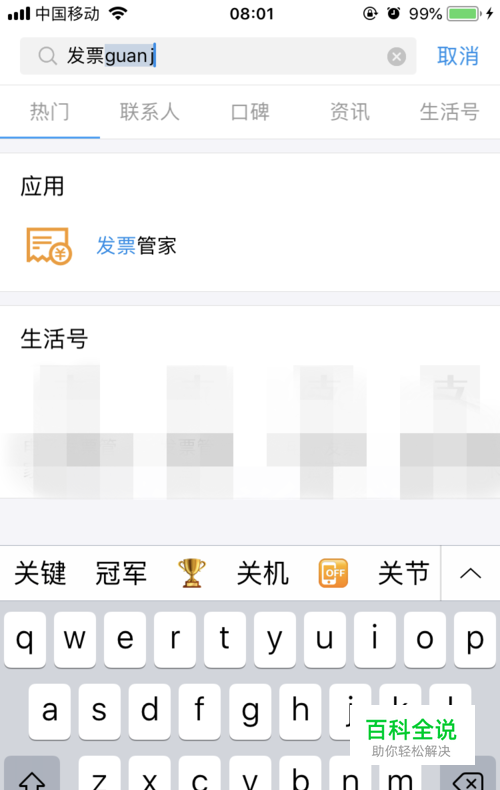 这里建议更新软件到最新版本,然后打开支付宝搜索发票,可以看到一个管家的选项,点击进入。