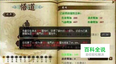 境界激活 1.在悟道系统界面,点击领悟,消耗修为,即可开启第一境界,第一阶段。 2.境界中的4条属性领悟无先后顺序要求,但只可以领悟已激活的。 3.当本境界中所有已激活的属性全部领悟满时,且本境界中还有其它属性未激活,则从未激活的属性中随机选取一条激活。 4. 当本境界中所有已激活的属性全部领悟满时,且本境界中还有其它属性未激活,按照从上而下的顺序进行激活。 5.当某个阶段12境界全满后,会开启下一阶段,即初期阶段必须12境界领悟满,才会进入中期的12境界的第一阶段,继续领悟