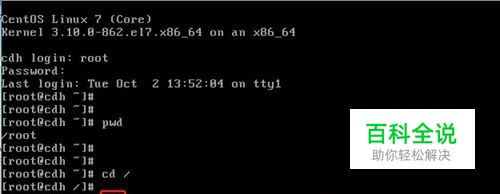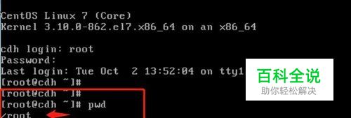 进入系统后,先用 pwd命令查看一下当前所在的目录。 如图,是在root目录下。