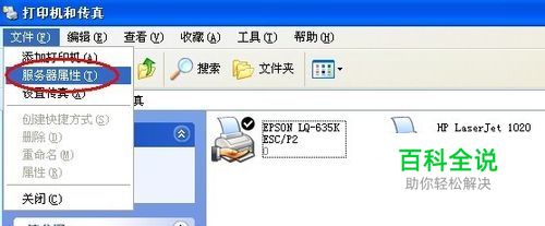 调出“服务器属性”界面 点击“开始”—“设置” —“打印机和传真”。如图一,点击“文件”,在下拉菜单中选择“服务器属性”。