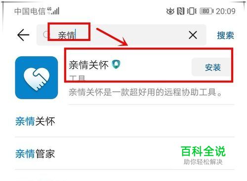 打开应用市场,搜索“亲情关怀”,下载并完成安装。