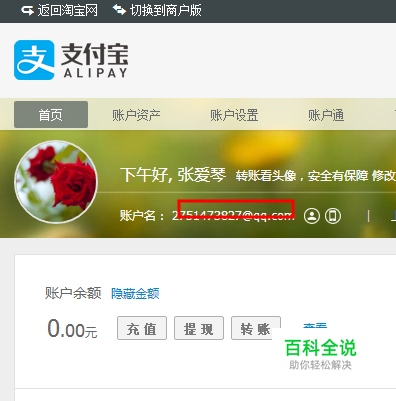 登录支付宝首页,单击头像旁边的邮箱号。