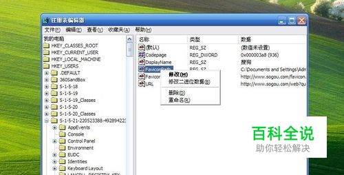 在注册表的编辑窗口中,选择你需要删除的文件, 点击鼠标右键,弹出的属性菜单中,选择“删除”选项就可以了