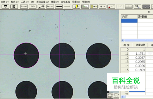 同时移动仪器X轴和Y轴,使标准圆移动到Y轴正半轴,使用鼠标在圆内左键单击,请注意不要超出视频区的显示范围。