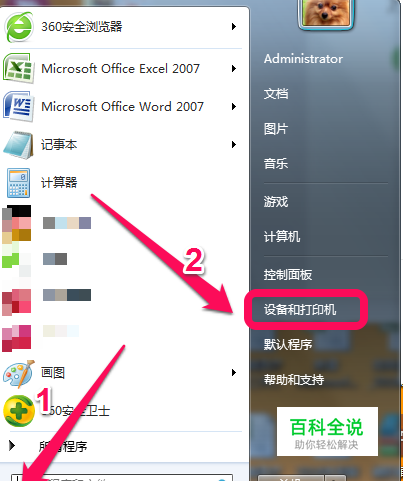 这里以win7系统和惠普laserjet M1005一体机为例,来举例说明。首先点击【开始】菜单,打开【设备和打印机】