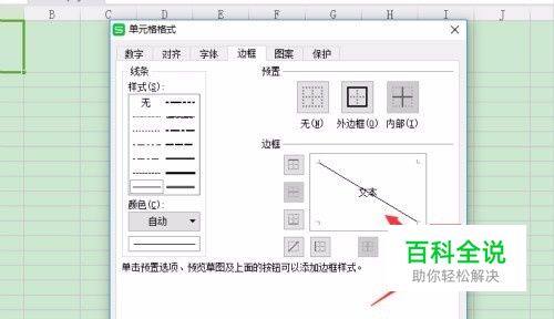 在弹出的对话框中找到边框,里面会有不同的边线,我们可以选择合适的斜线确定即可。
