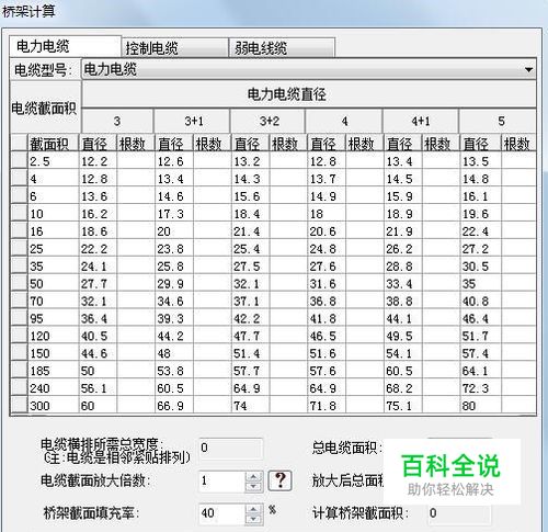 选择电力电缆,根据电缆截面积和电缆芯数,填上这种型号电缆的根数,点击计算,就到所需桥架的大小规格了。