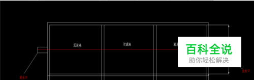 打开CAD,点击绘图工具栏中的“矩形”或“直线”按钮,点击“ 正交 ”按钮,绘制三级池(沉淀池、过滤池、清水池)以及进出水口,并进行标注。