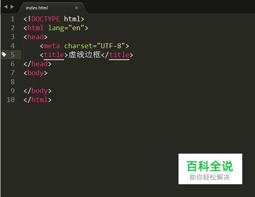 在html代码页面上找到body标签,然后在body标签中添加一个div标签,并为这个div添加样式,代码: <div class="dotted-line"></div> 如图: